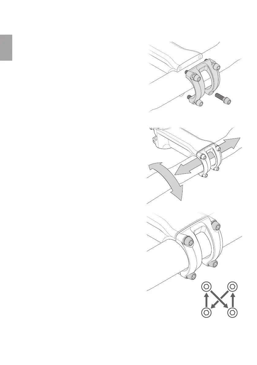 4. Tighten the bolts of the handlebar clamp alternately in small