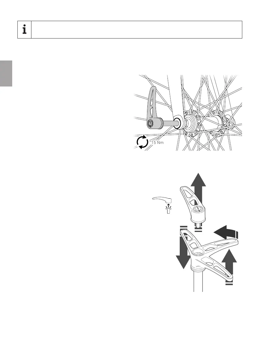 9. Controleer of het wiel juist in het frame of de voorvork is bevestigd.