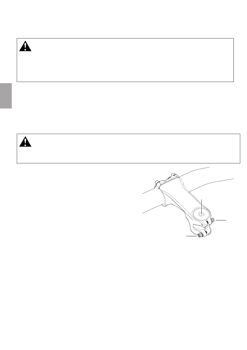6. Serrez tour à tour la/les vis de serrage (2) de la potence. Le couple nécessaire est annoncé sur la potence ou