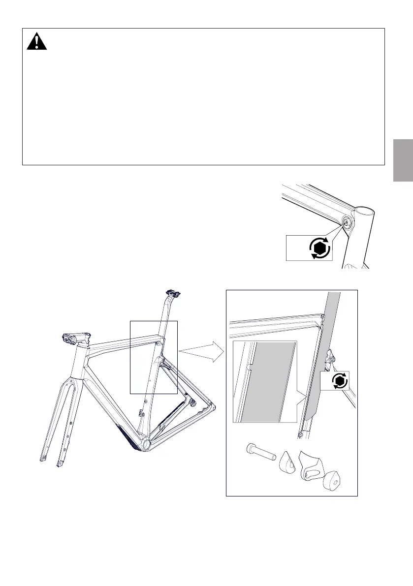 → Il est indispensable que la tige de selle soit visible dans le perçage du cadre. Si on ne peut pas voir la tige de