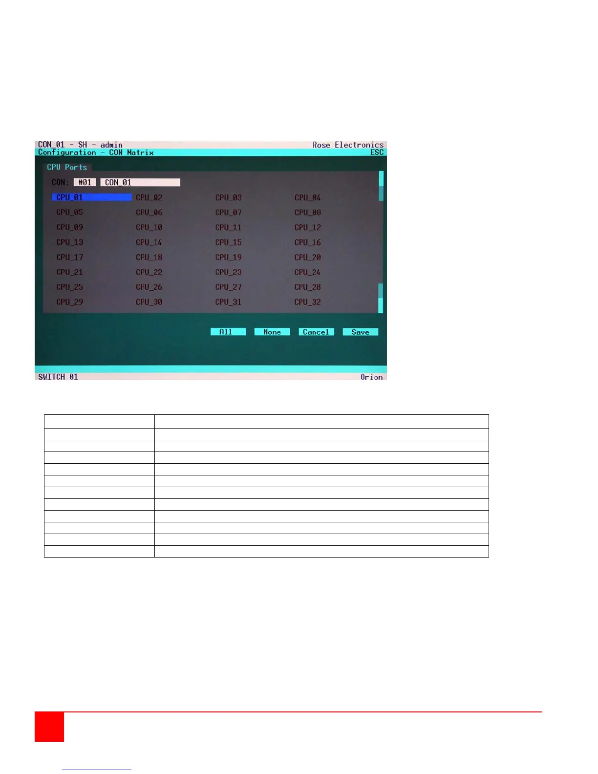 Console can connect to. To assign a CPU to a CON port, select the CPU port and press return
