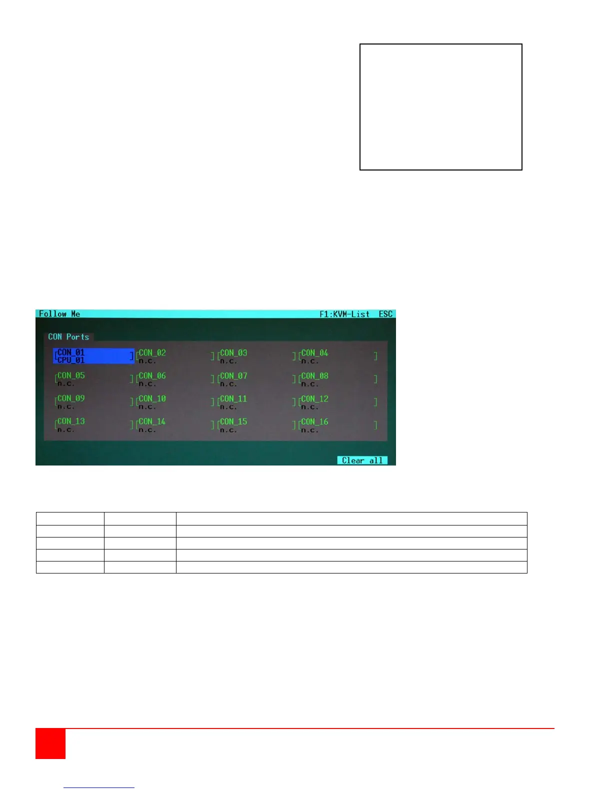 Pressing the <F2> key from the KVM-List or KVM-Switch menu will display the below screen. The Follow Me