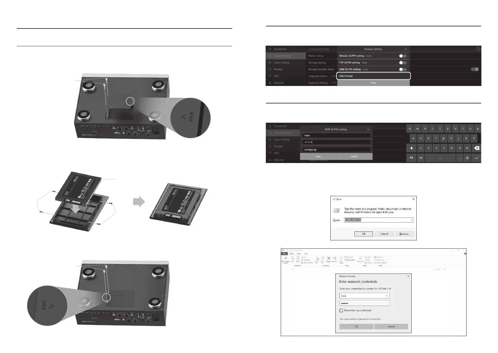 Rose electronics RS150B - How to Connect SSD; How to Insert SSD; How to Format after Installing SSD; How to Copy Files through the Network