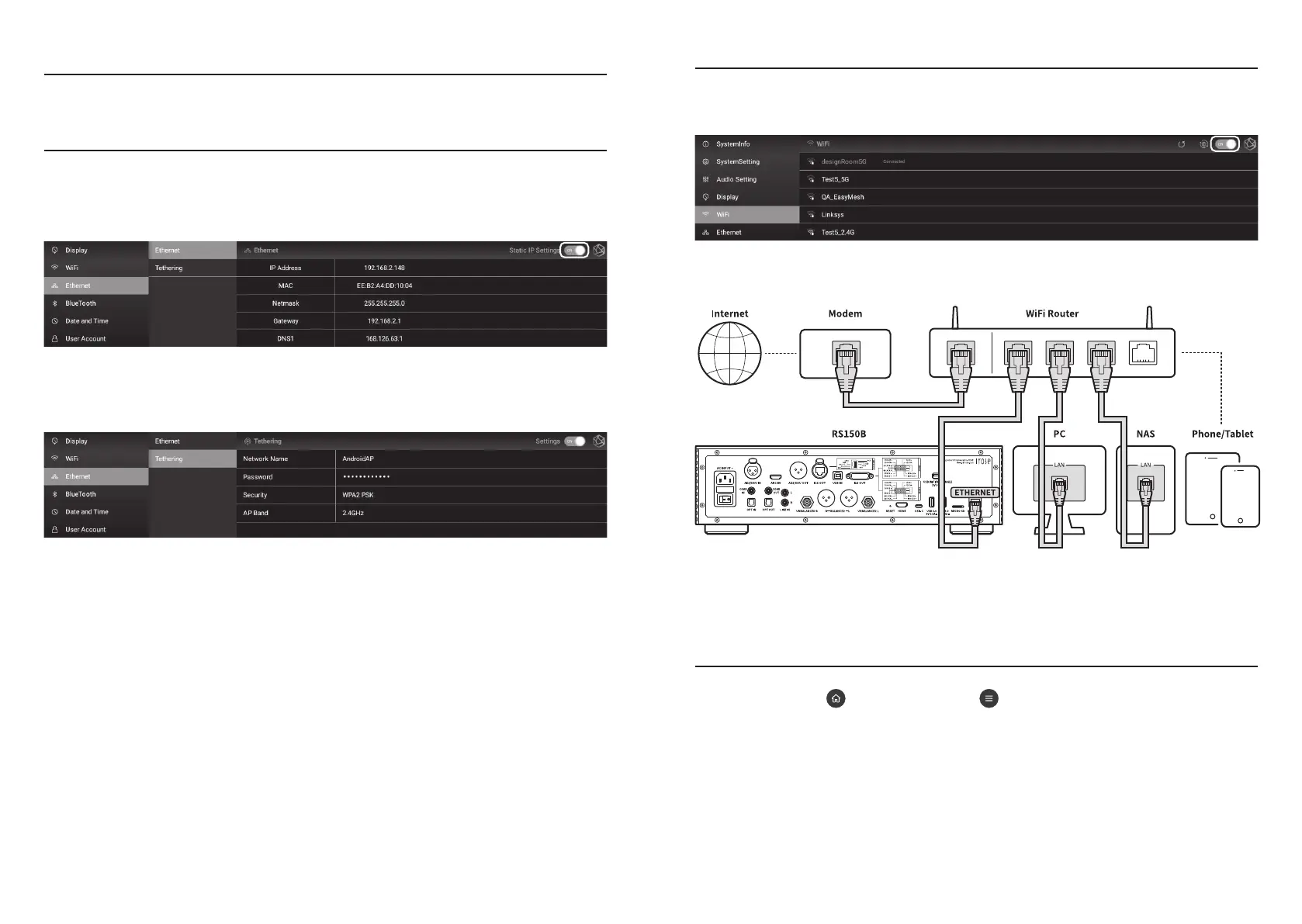 Rose electronics RS150B - Network Connection; Ethernet Connection(Wired); How to Pair with the Bluetooth Remote Control; Wifi Connection(Wireless)