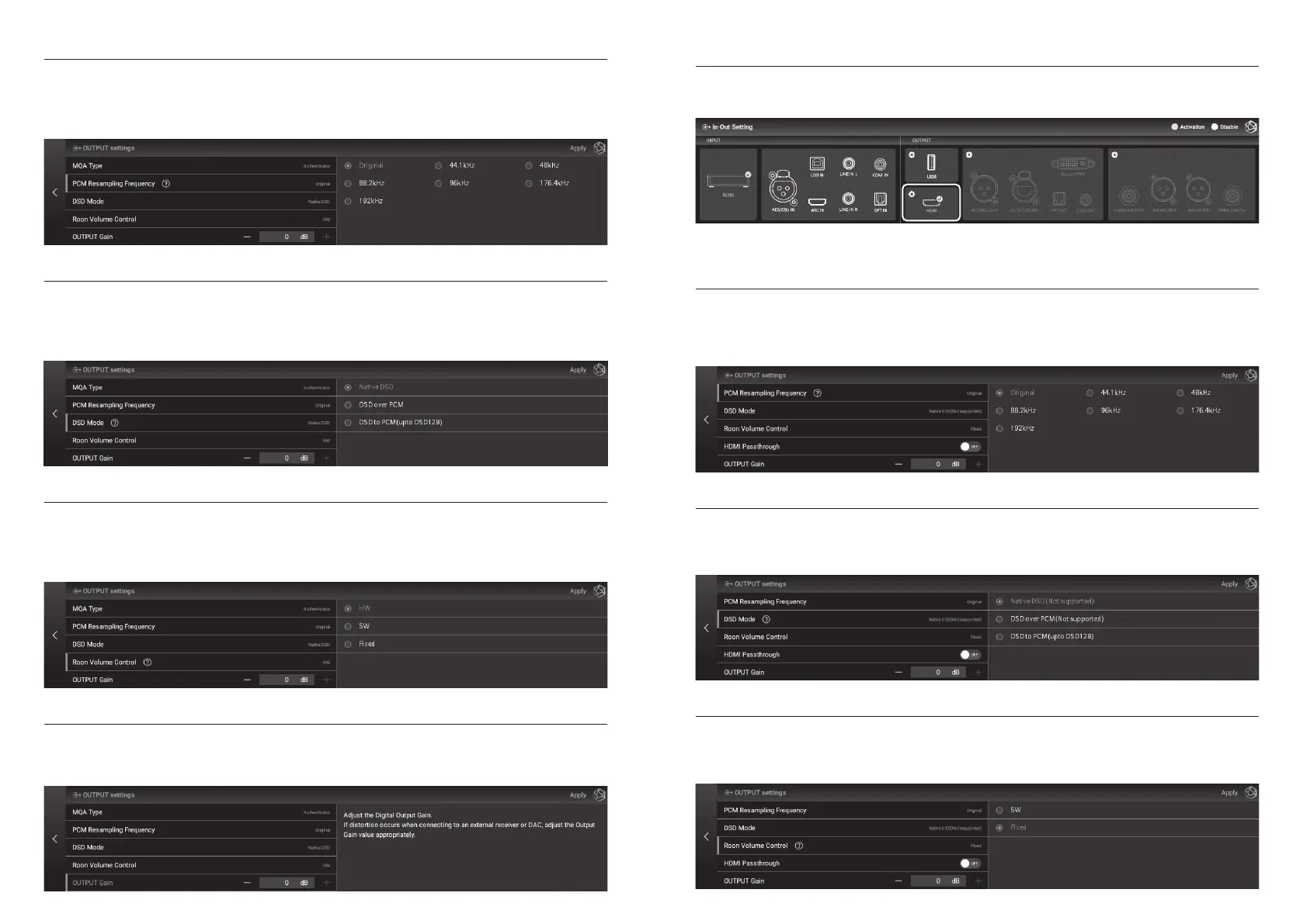 Rose electronics RS150B - HDMI and Analog Output Settings