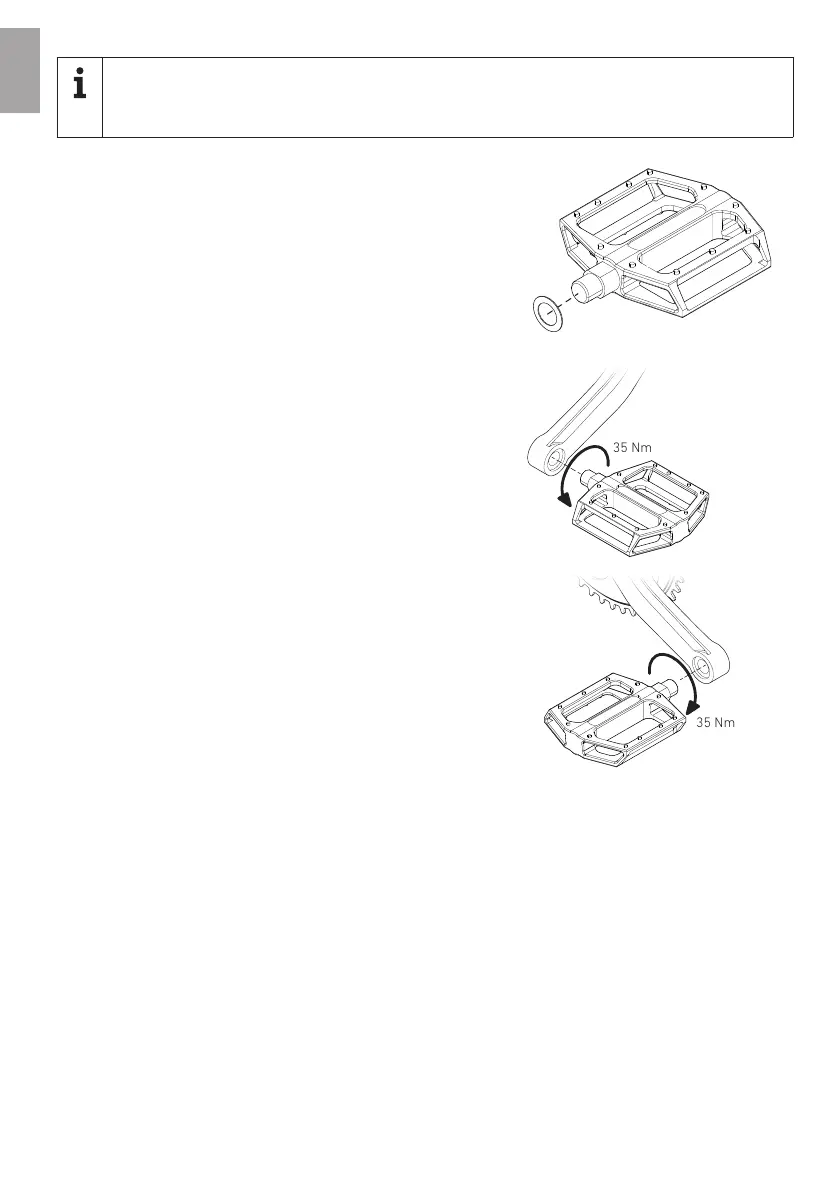 rechten Kurbelarm und ziehe das Pedal mit 35 Nm an.