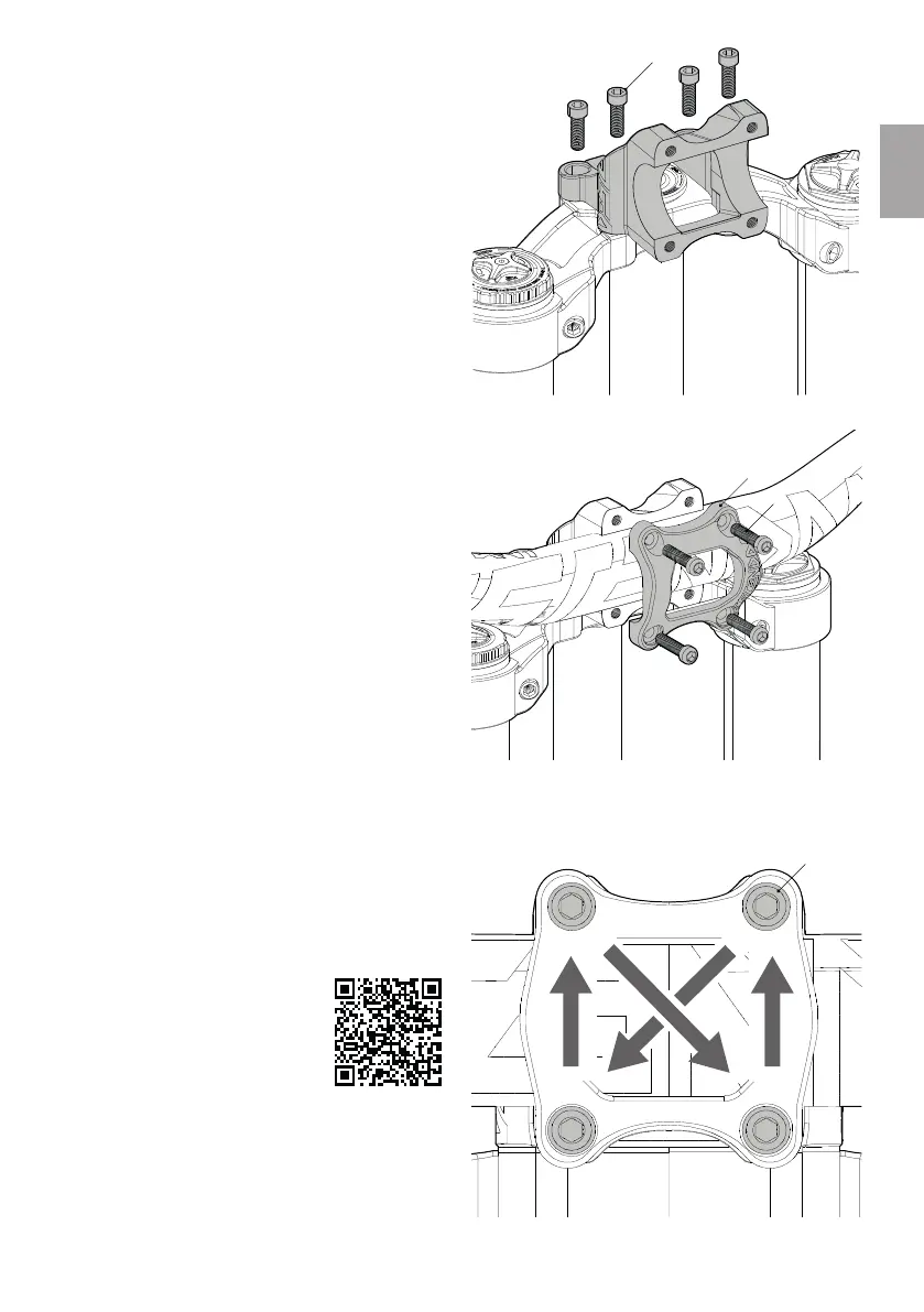 3. Tighten the bolts (1) to a torque of 16 Nm.