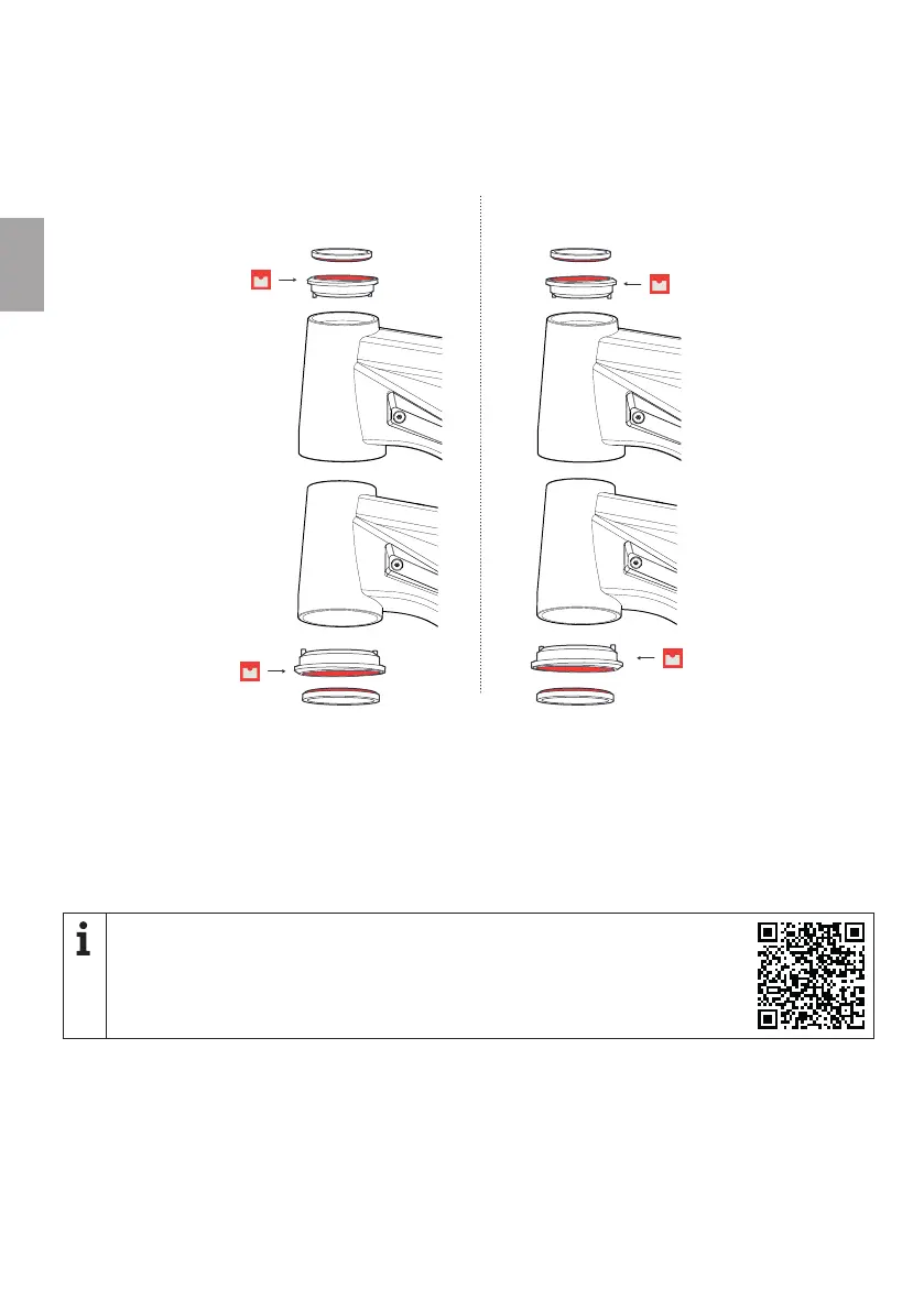 → Belangrijk! De markeringen op de lagercups moeten allemaal in dezelfde richting wijzen.