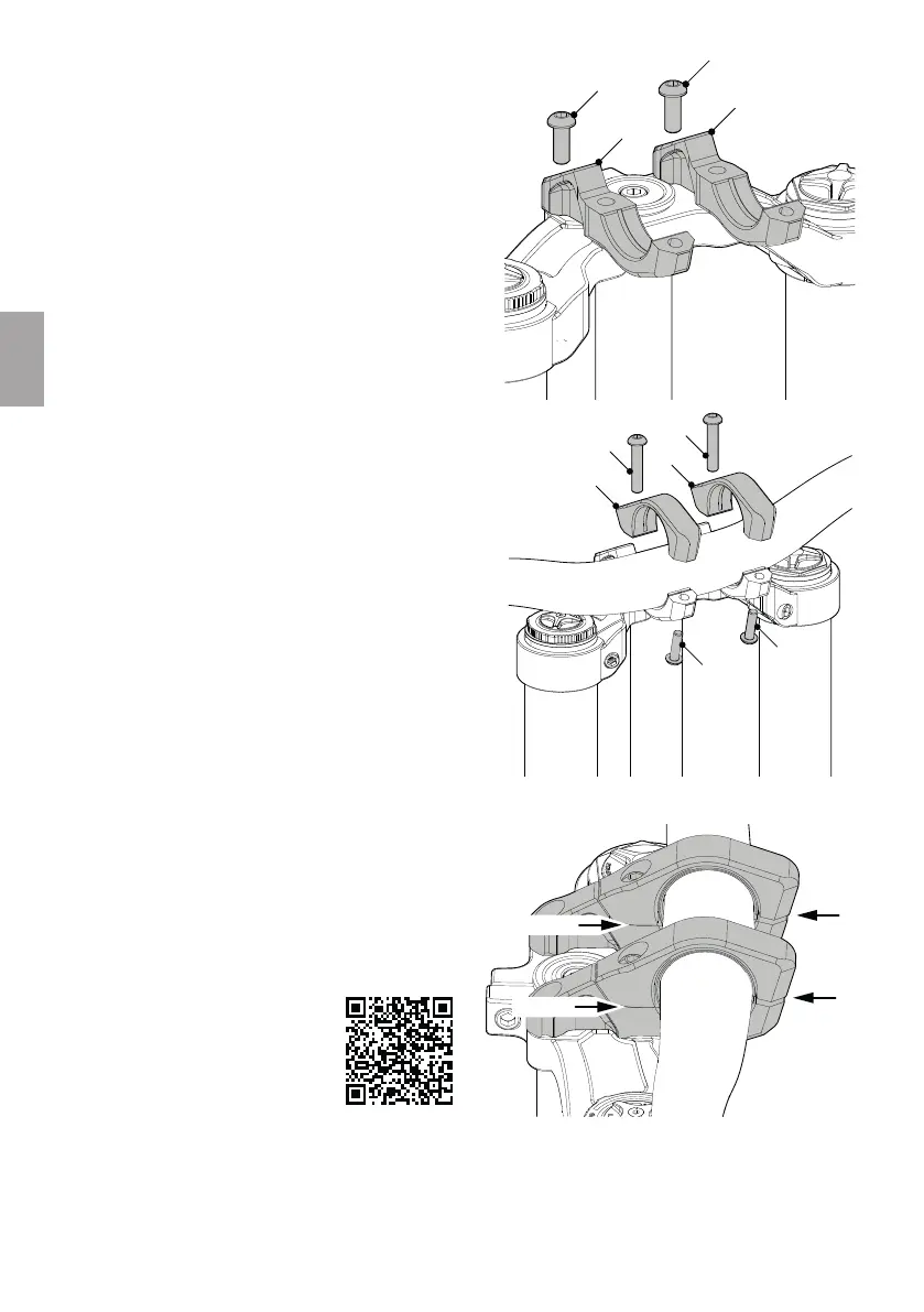potence sur le té de fourche, vissez les vis (2/M6x15
