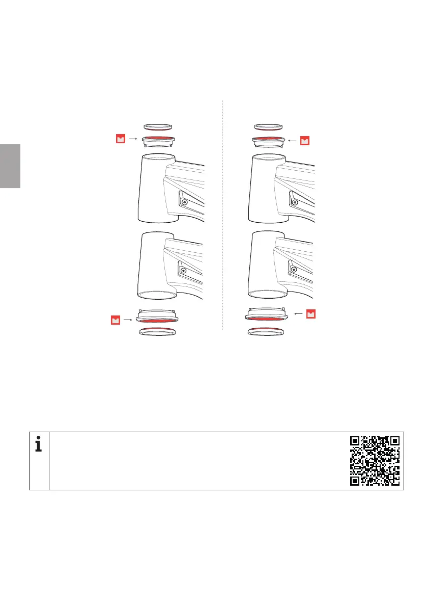 3. Appliquez une fine couche de graisse à l'intérieur des cuvettes (marqué en rouge), puis mettez en place les roulements