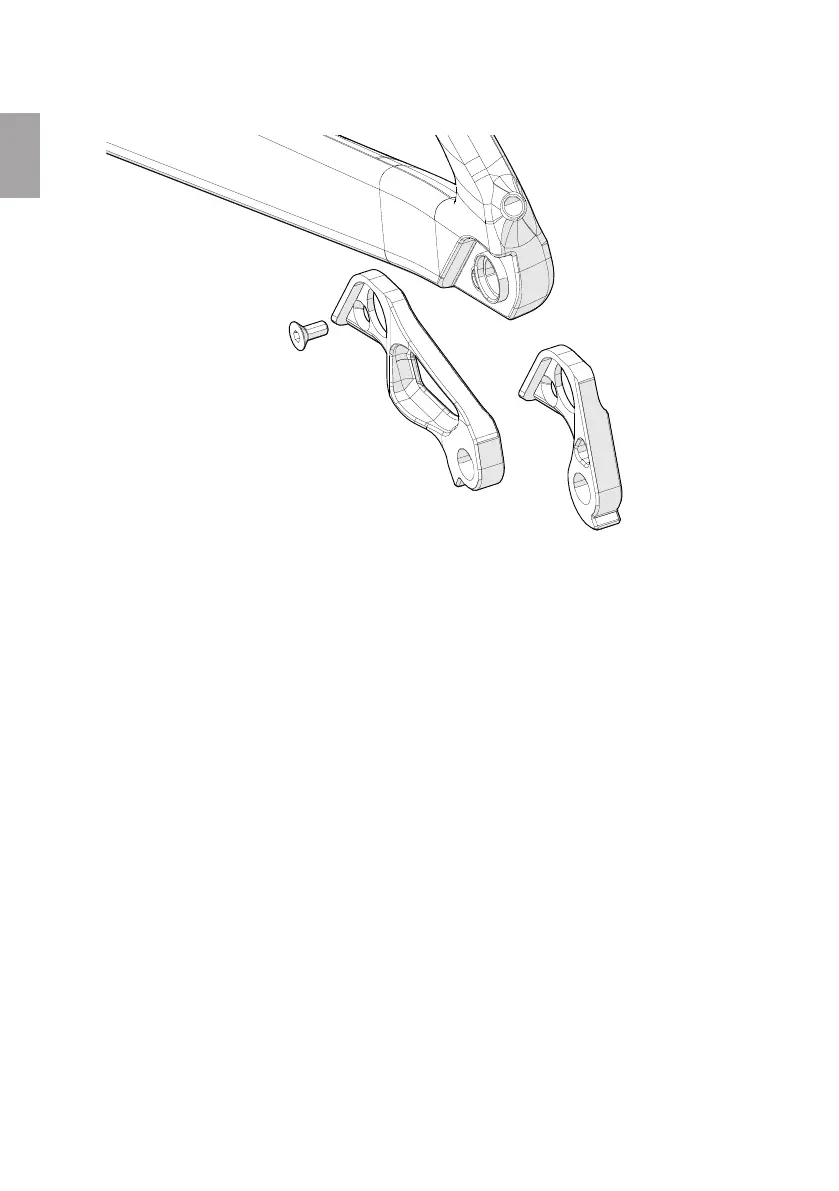 1. Unscrew the screw of the mounted derailleur hanger and remove the derailleur hanger.