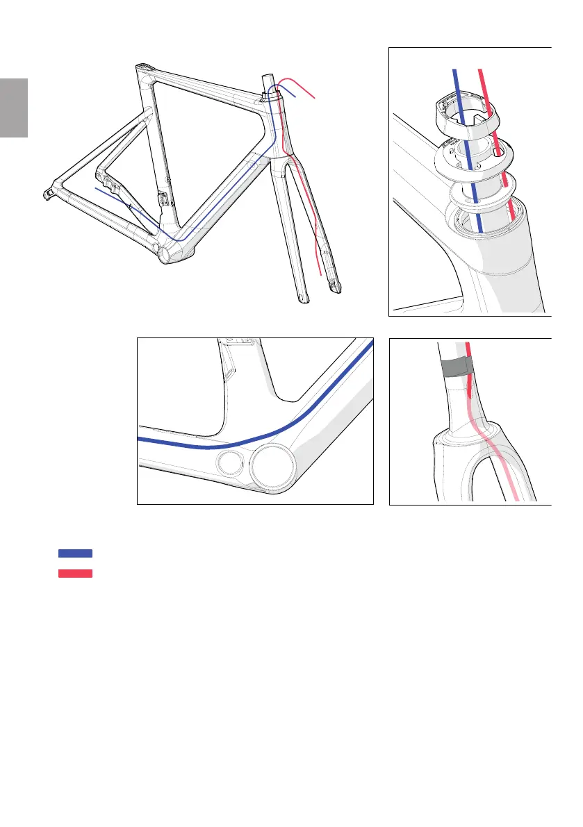pushed over the head tube into the frame before the hose is laid. Additional fixing is not required. Make sure that the rear