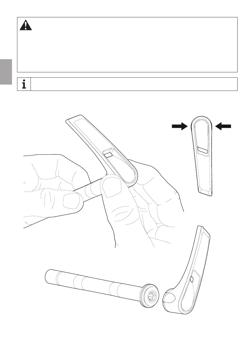 De hendel van de ROSE steekas kan worden verwijderd en worden gebruikt voor het voor- of achterwiel. Druk hiervoor op