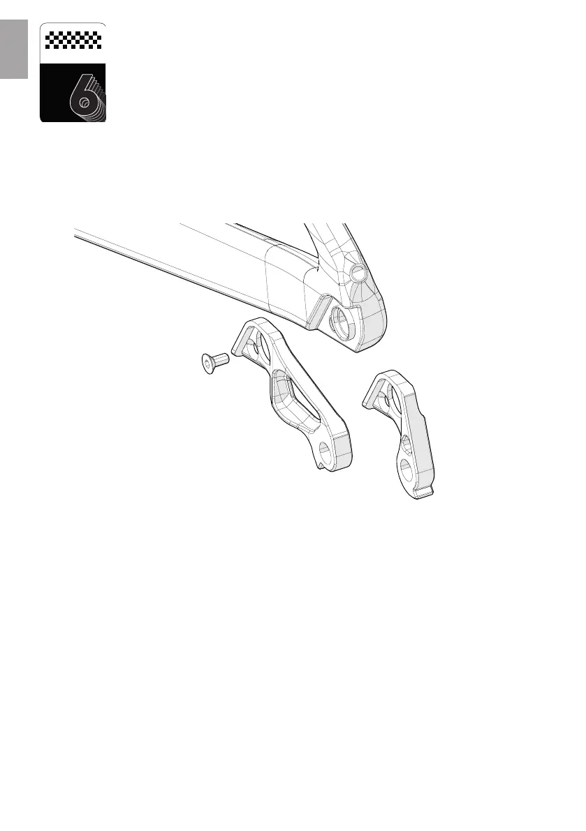 3. Bringe das Schaltauge formschlüssig an, drehe die Schraube hinein und ziehe sie mit einem