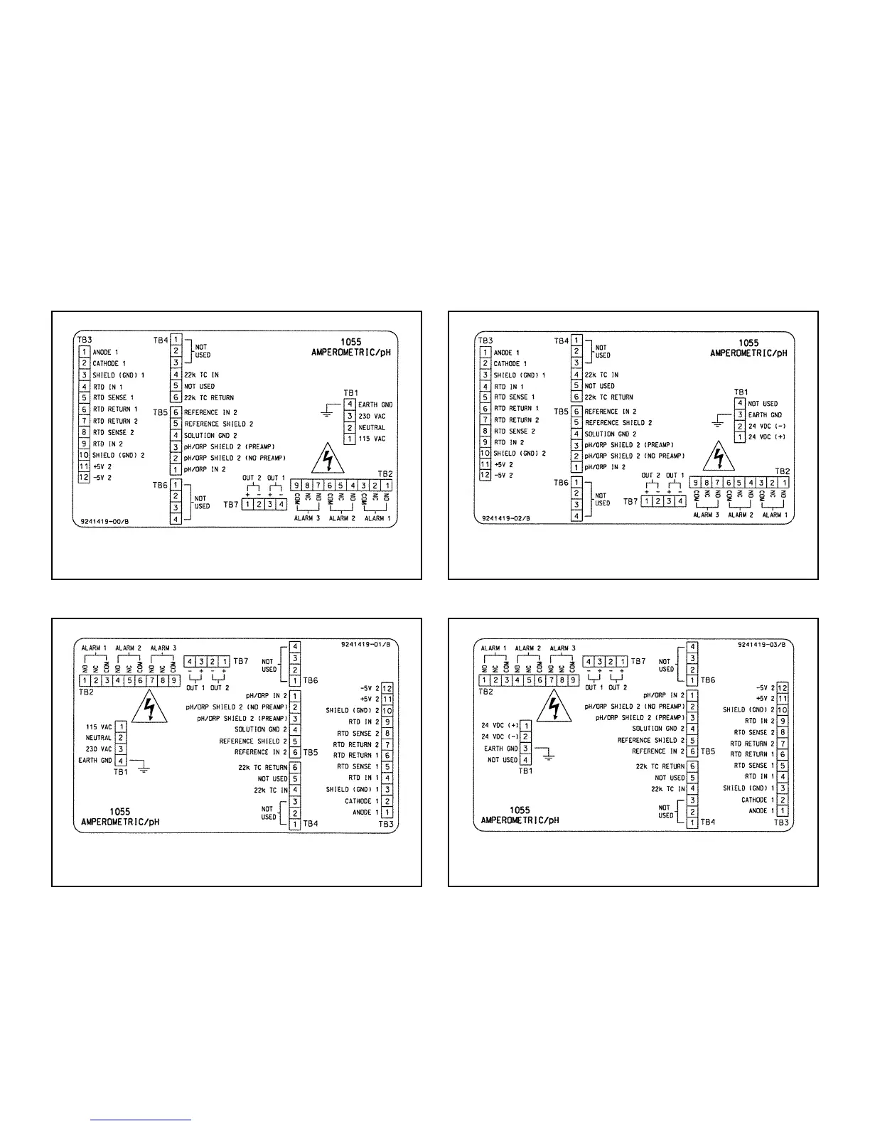 2. Wire sensor(s) to the analyzer. See the drawings below. Refer to the sensor instruction sheet for details. Make alarm,