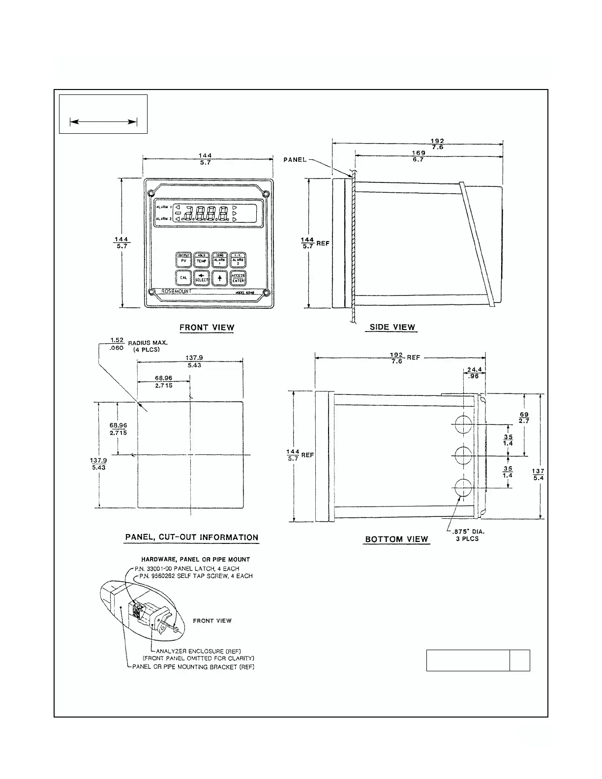 Rosemount 1054B - Panel Mounting Cutout Details
