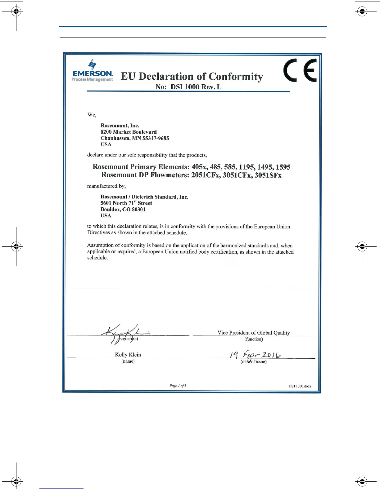 Figure 15. Rosemount 1195 Declaration of Conformity