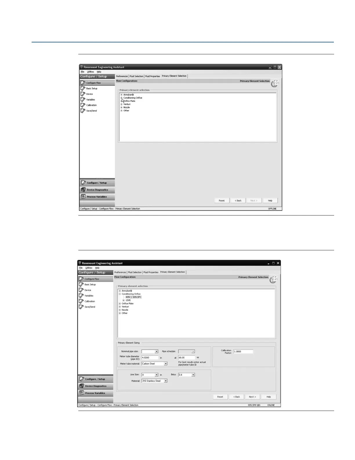 Figure 2-10. Primary Element Selection Tab - 405C/3051SFC