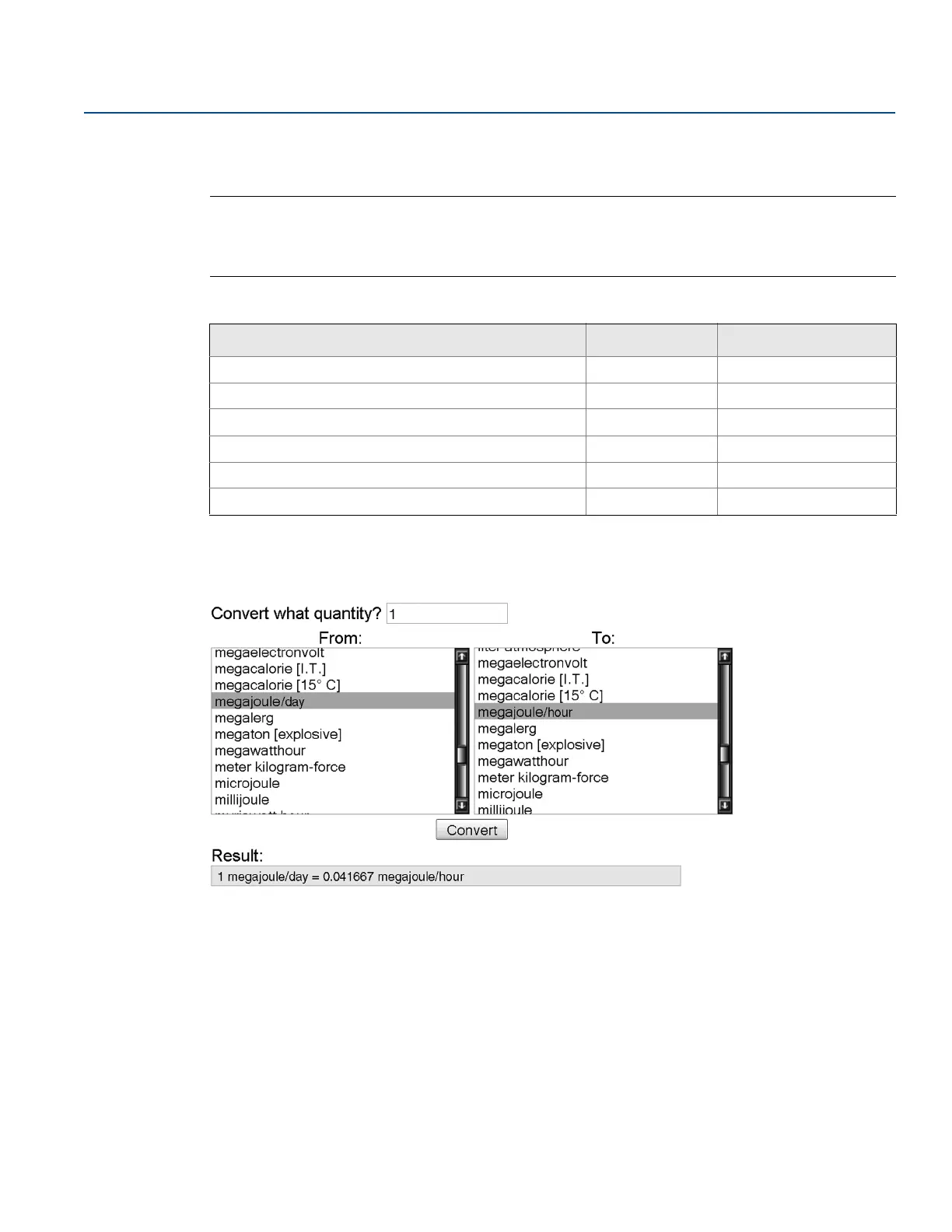 Megajoules per Day (MJ/D) MJ/h 0.041667