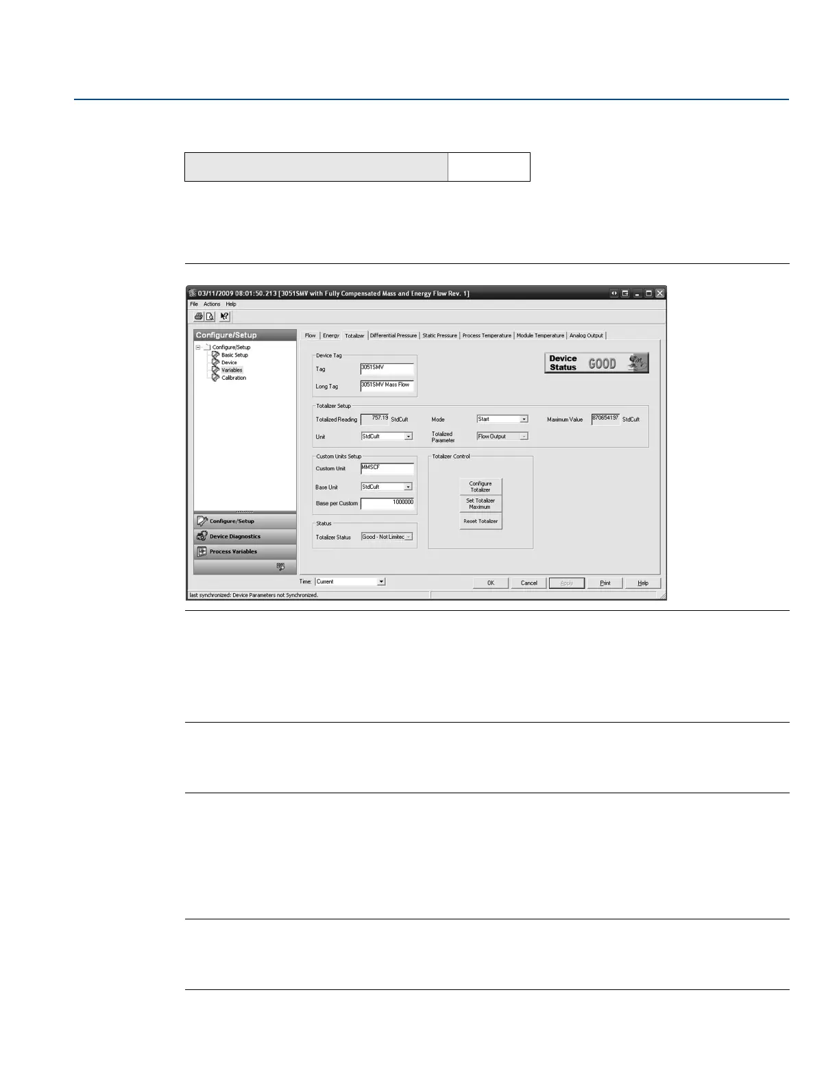 2. Verify the Totalized Parameter and the Totalizer Maximum value. To edit the Totalized Parameter, select