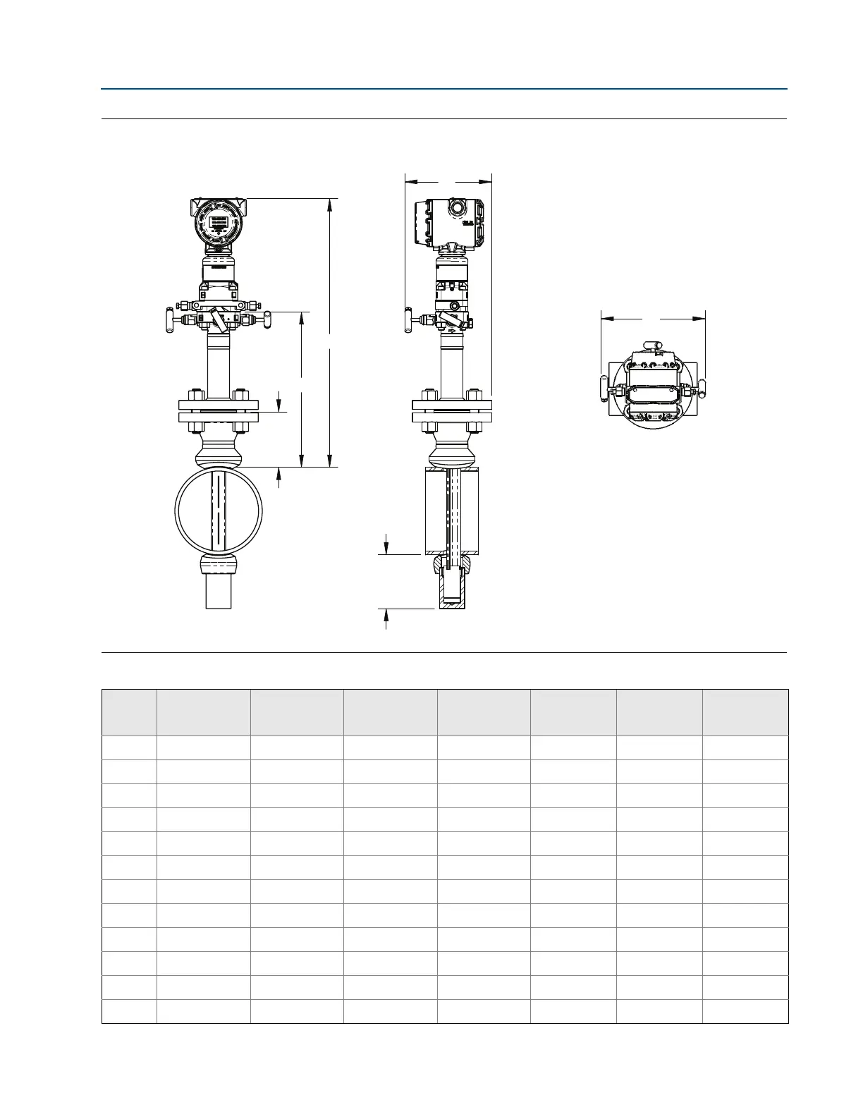 Table 33. 3051SFA Flanged Annubar Flowmeter Dimensional Data