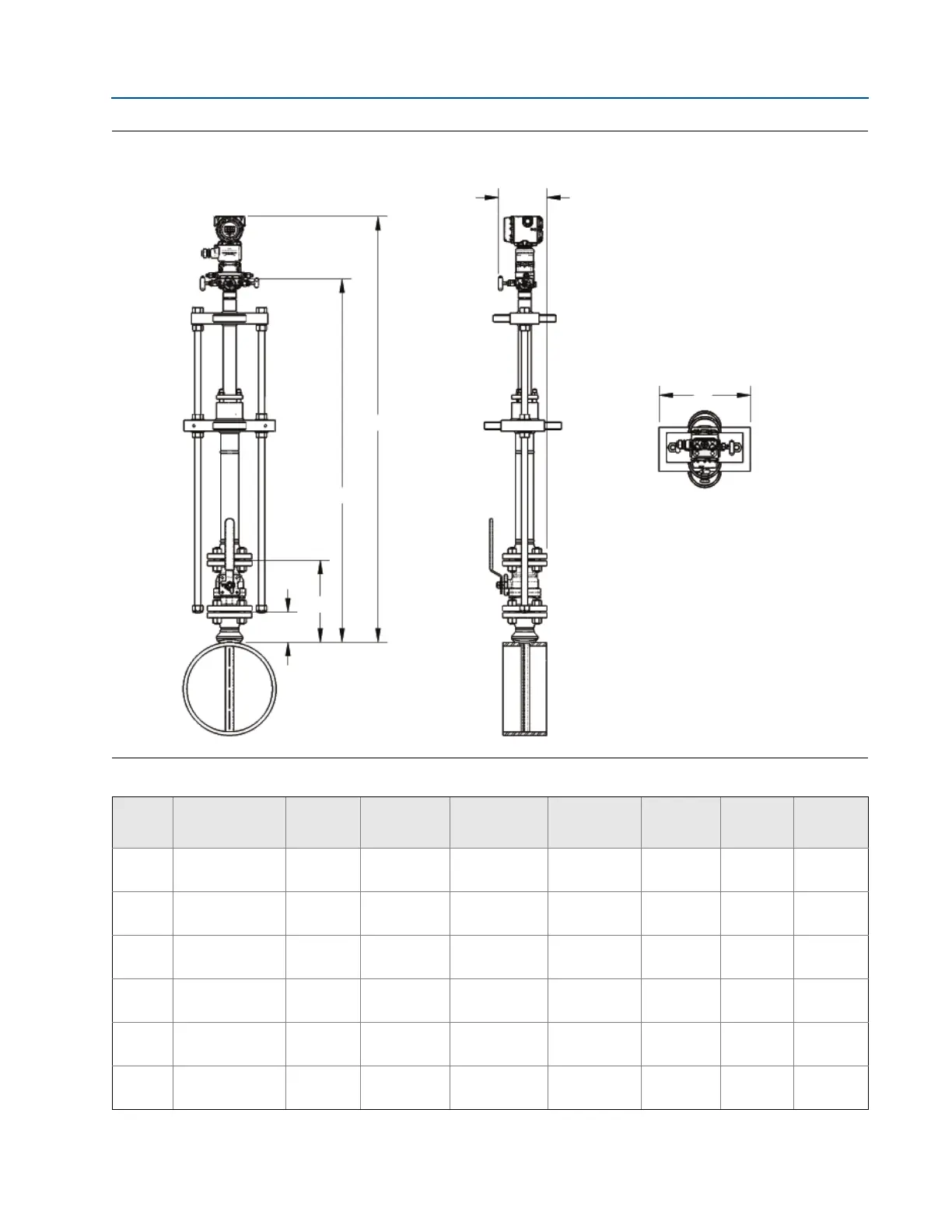 Table 34. 3051SFA Flanged Flo-Tap Annubar Flowmeter Dimensional Data