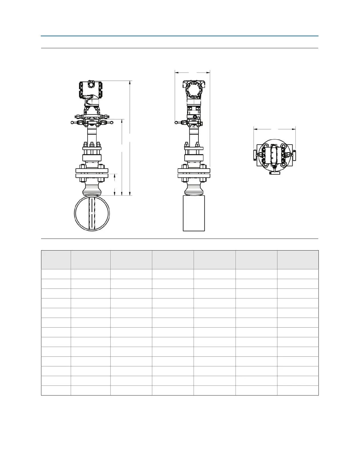 Table 38. 3051CFA Flange-Lok Annubar Flowmeter Dimensional Data