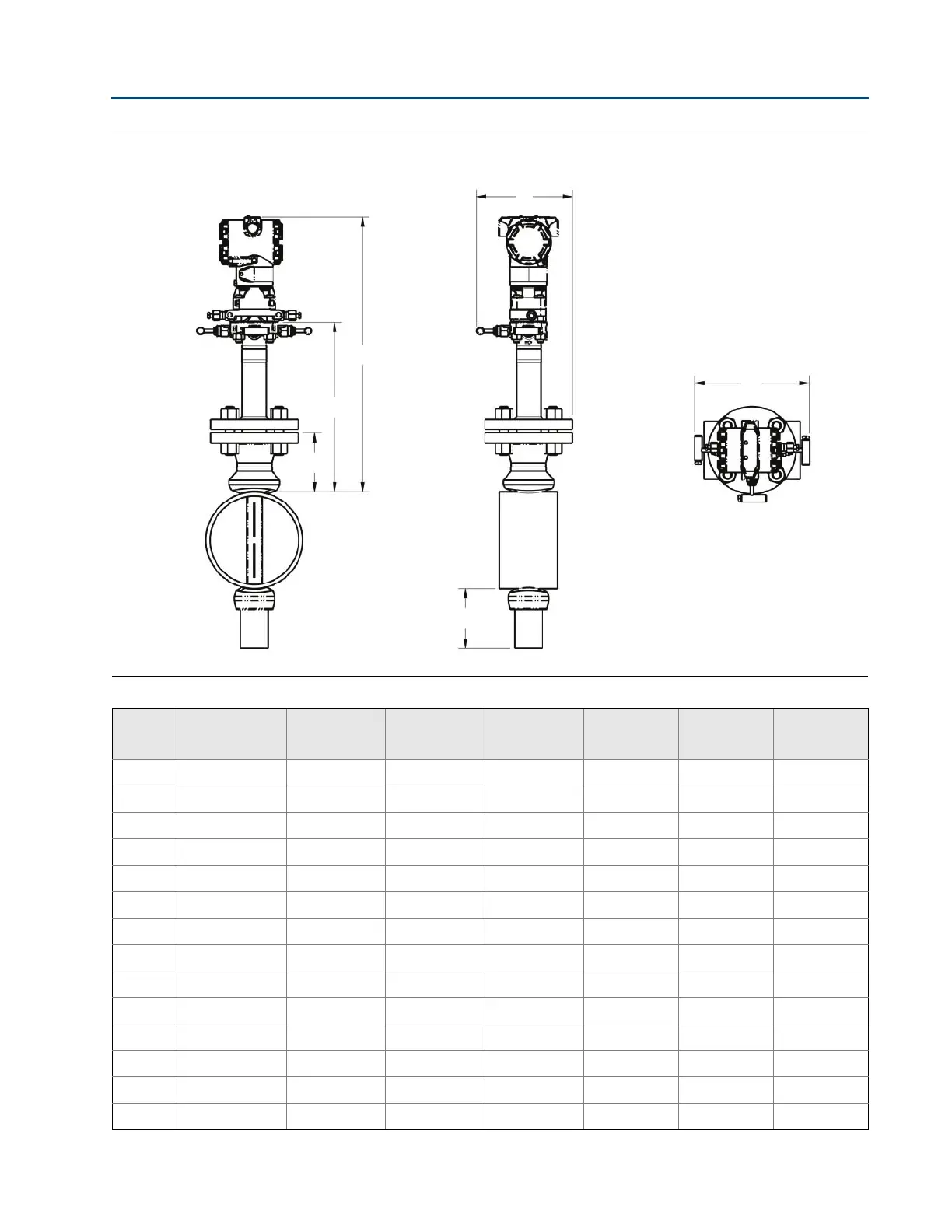 Table 39. 3051CFA Flanged Annubar Flowmeter Dimensional Data