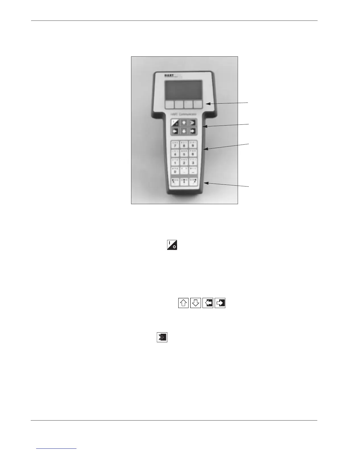 Use this key to power the HART Communicator. When the