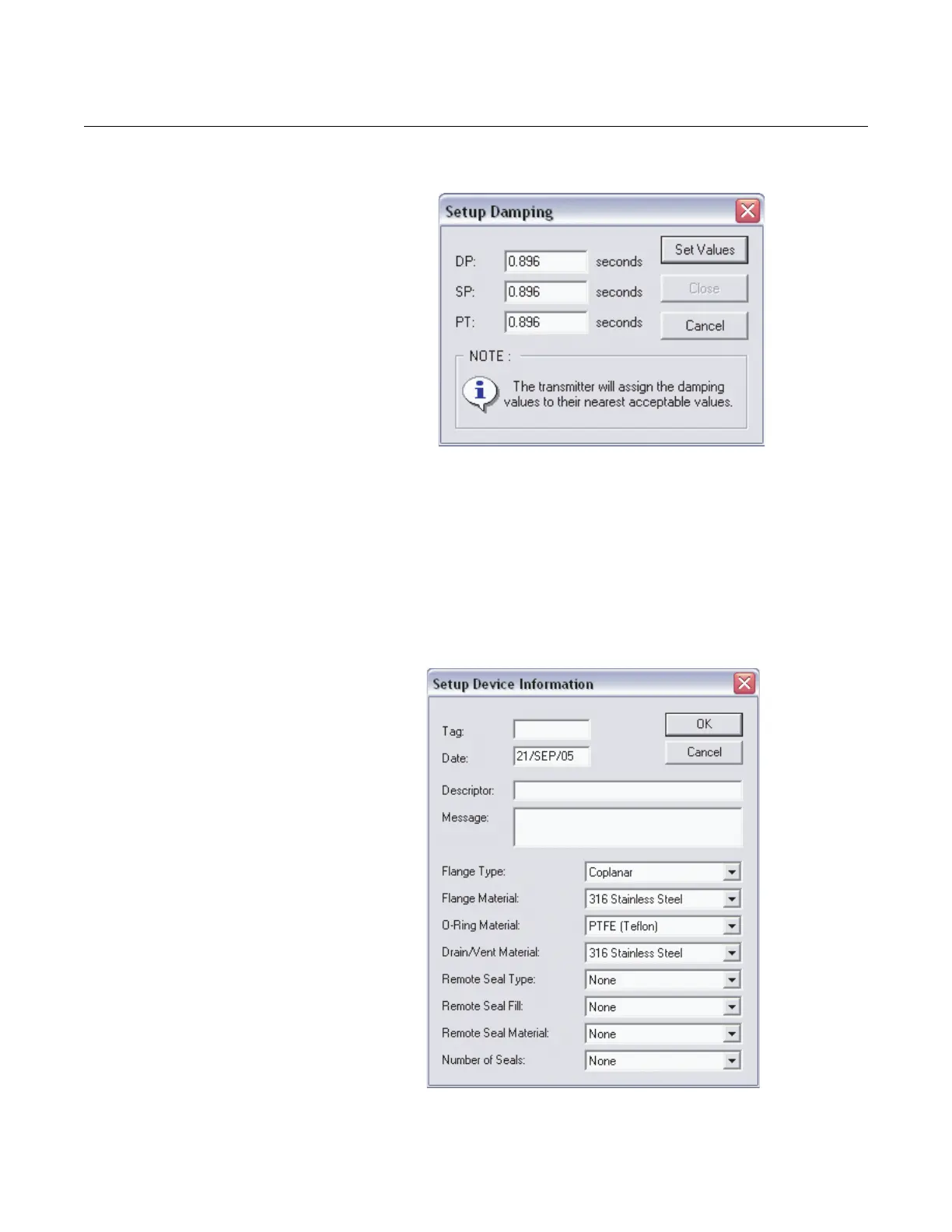 flange, o-ring, drain/vent, and remote seals can be assigned for reference