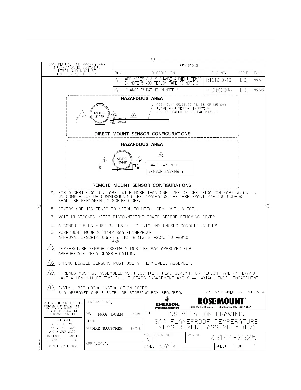 Figure B-5. 3144P SAA Flameproof Approval Installation Drawing 03144-0325. Sheet 1 of 1.