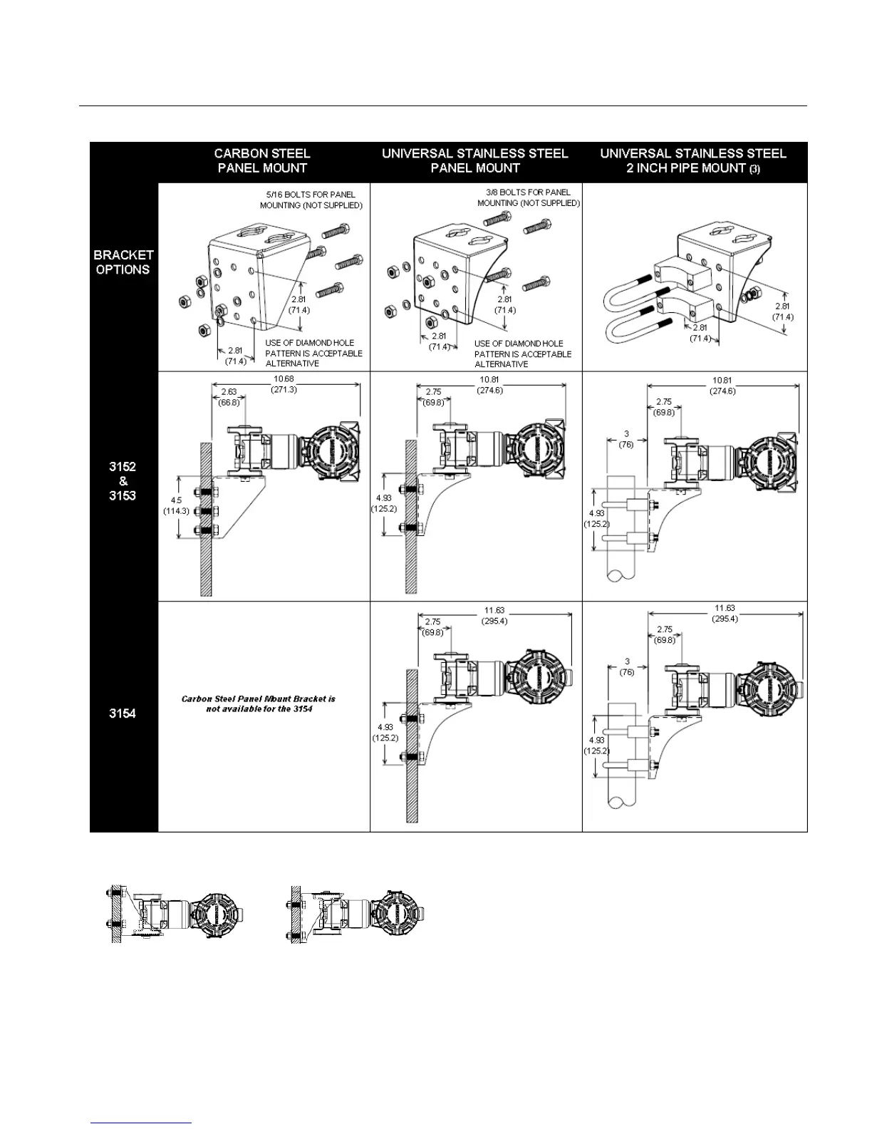 (2) Transmitters can alternatively be mounted inside bracket (as shown below) or with process connection positioned adjacent to bracket