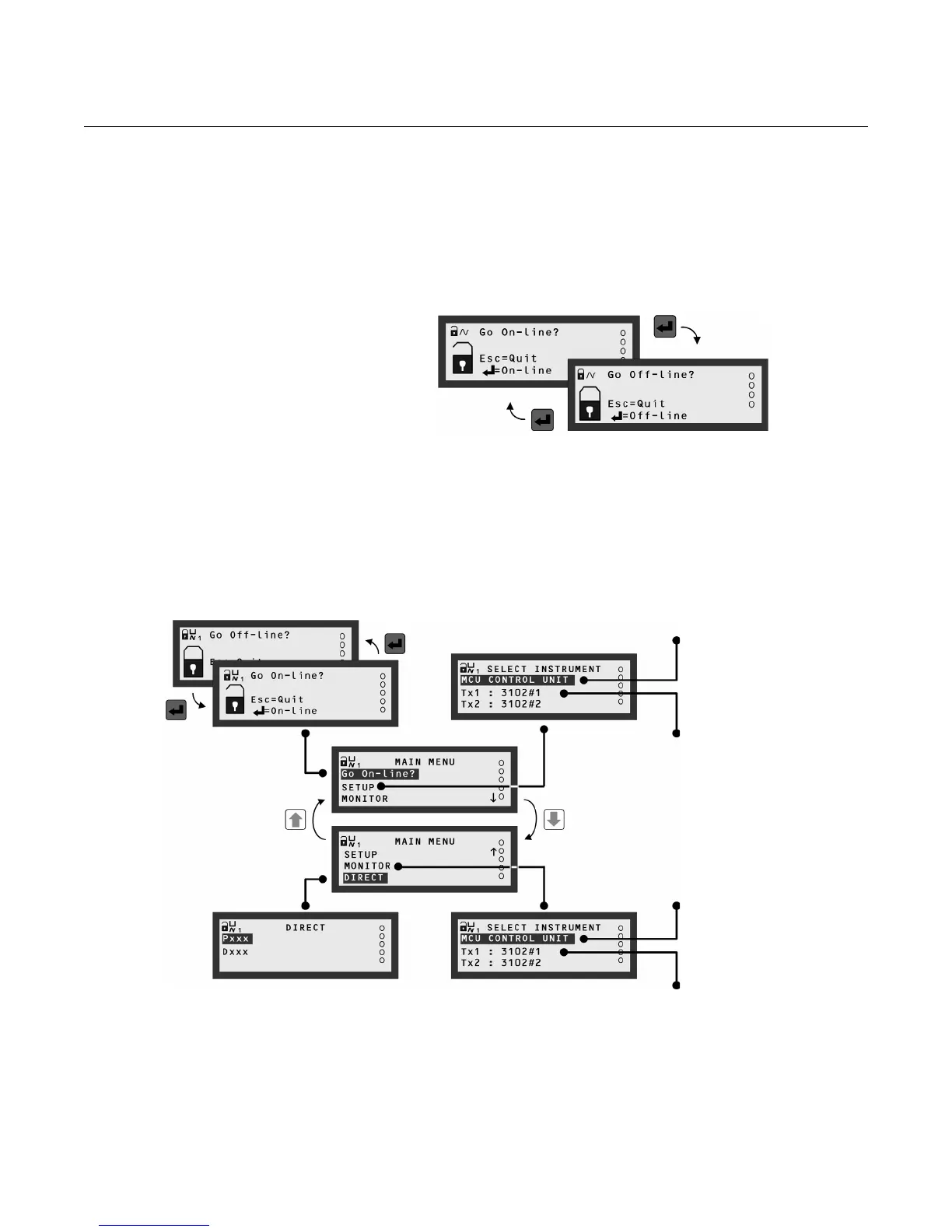 9. With the screen displaying "Go On-line?" on the top line, press the