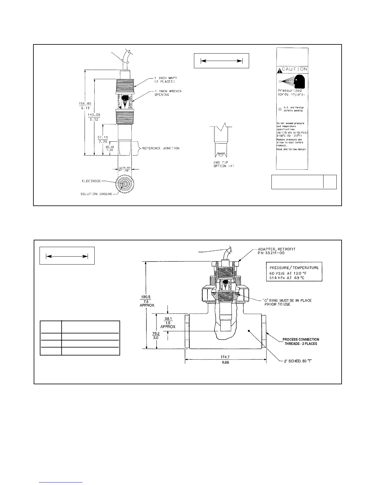 Rosemount 396P - Dimensional Drawing; Flow-Through Tee with Adapter (PN 915240-XX)