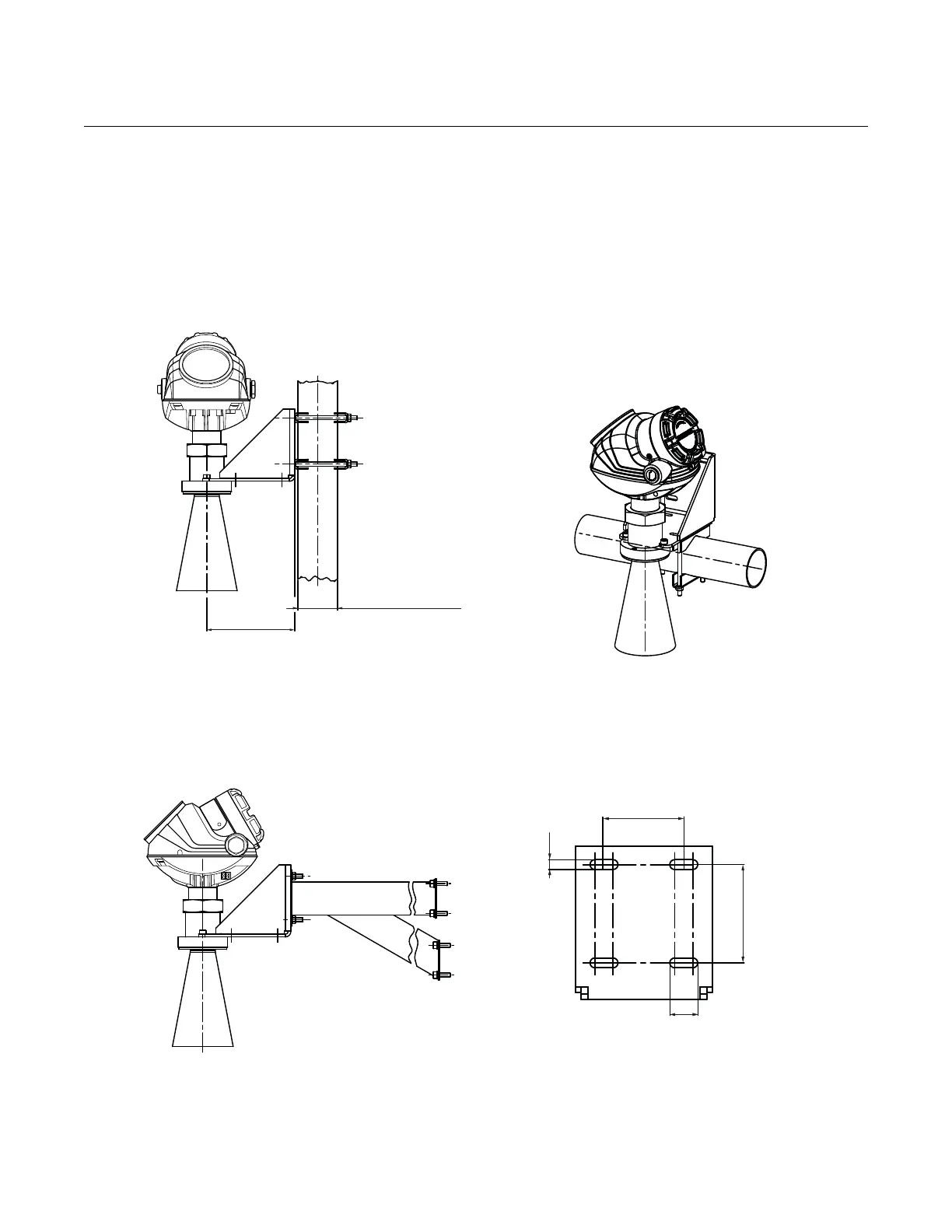 Bracket mounting is available for Rosemount 5401 and 5402 with SST Cone Antenna (2S-8S) and Rosemount