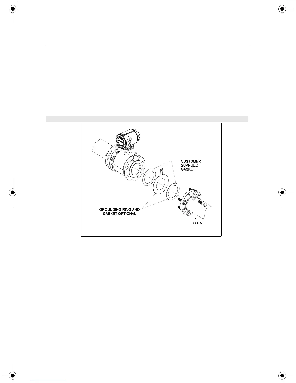 The sensor requires a gasket at each of its connections to adjacent devices or piping. The gasket