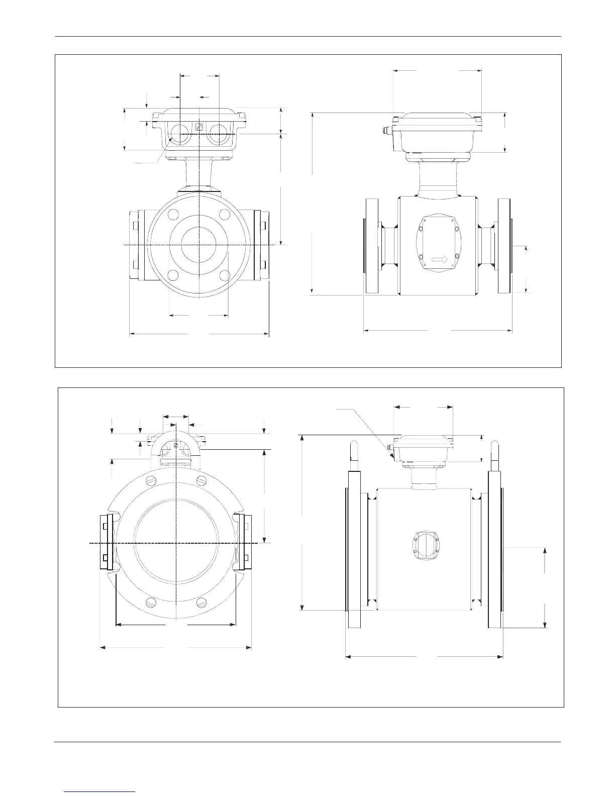 FIGURE 7-2. Dimensional Drawing of Model 8705 Flowtubes, Typical of 6- through 36-inch (150–900 mm) Line Sizes.