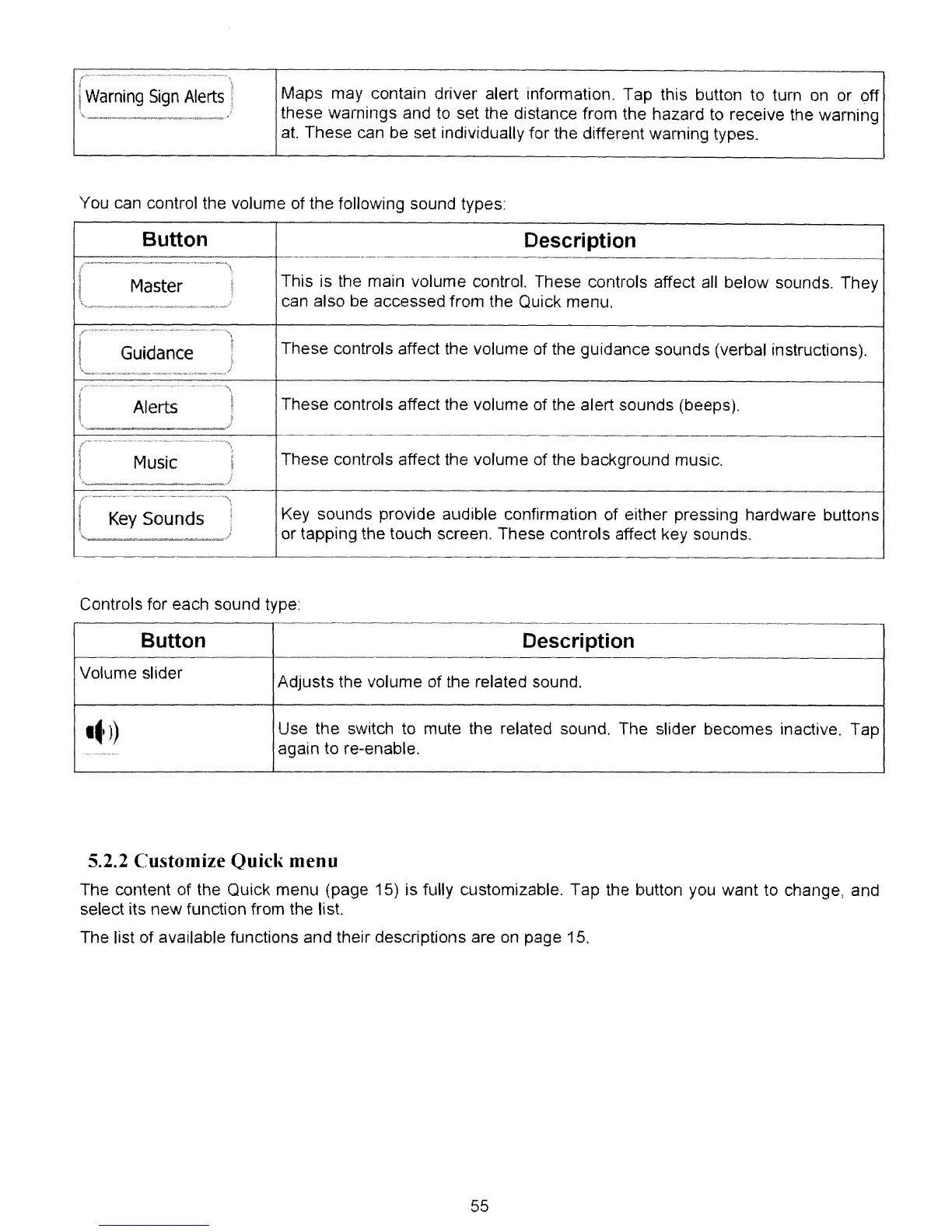 The content of the Quick menu (page 15) is fully customizable. Tap the button you want to change, and