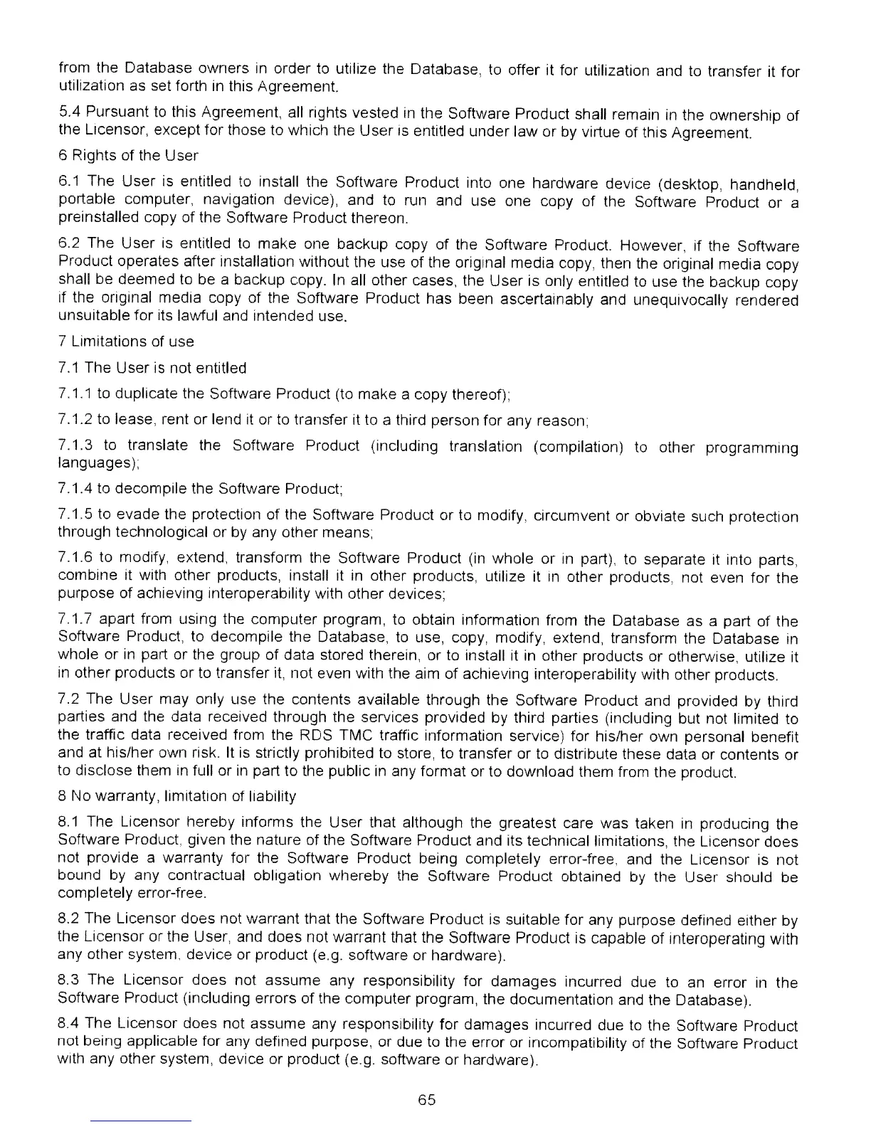 8.4 The Licensor does not assume any responsibility for damages incurred due to the Software Product