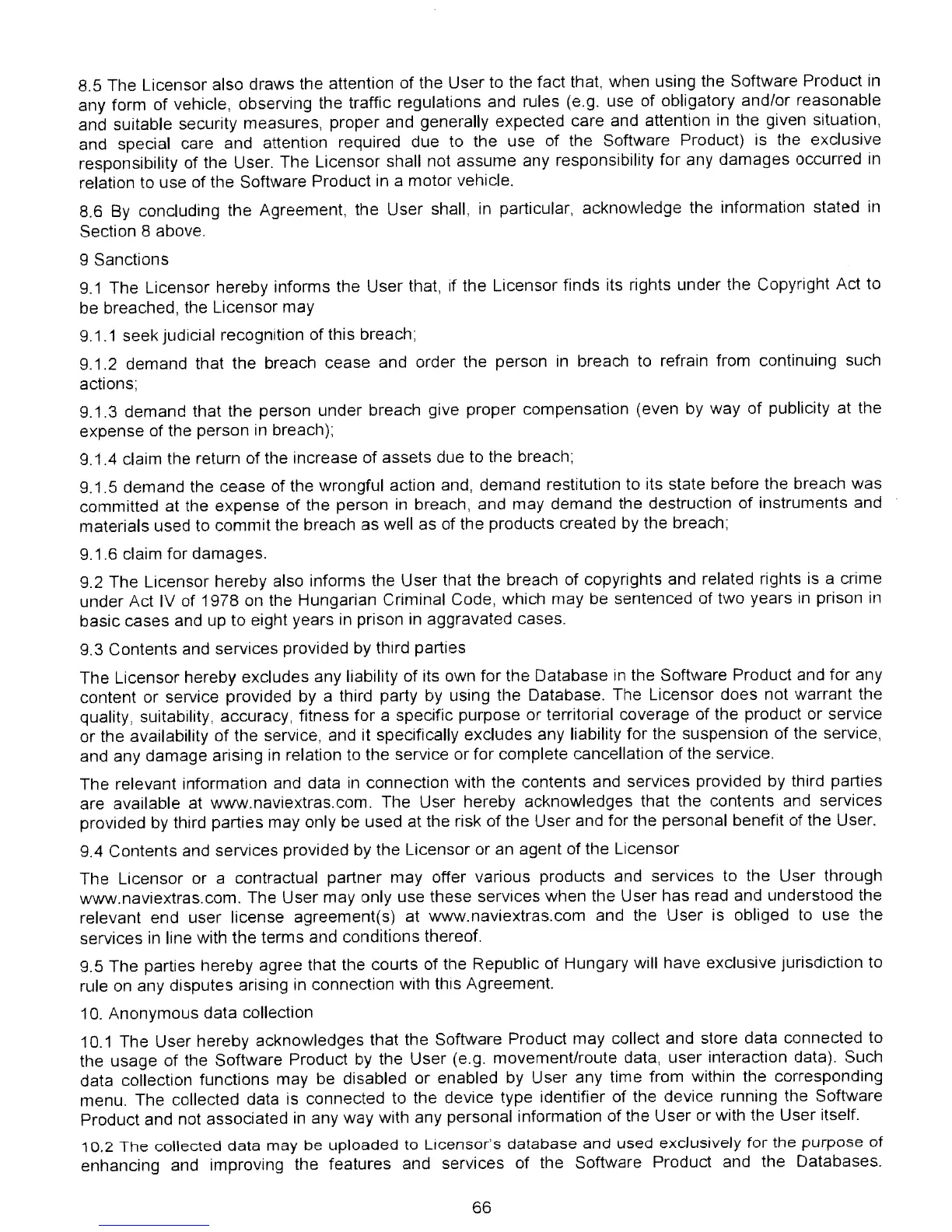 relevant end user license agreement(s) at www.naviextras.com and the User is obliged to use the