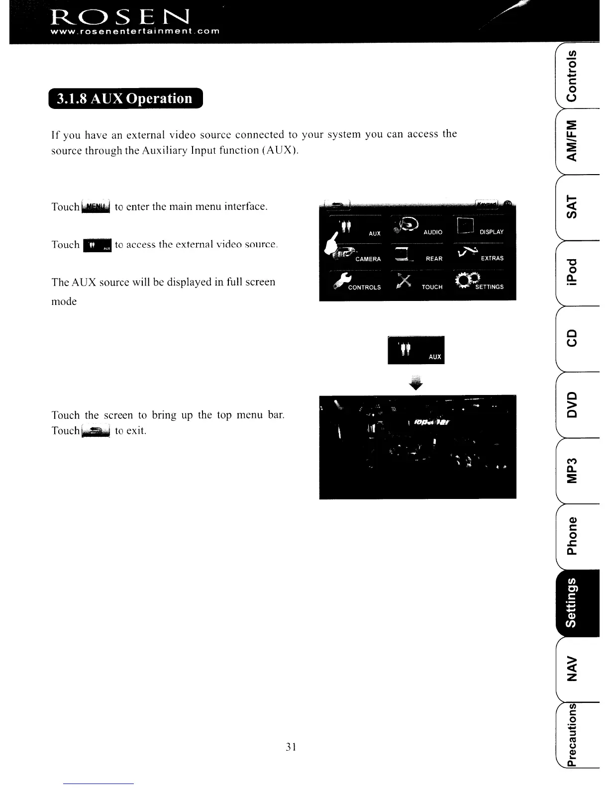 The AUX source will be displayed in full screen