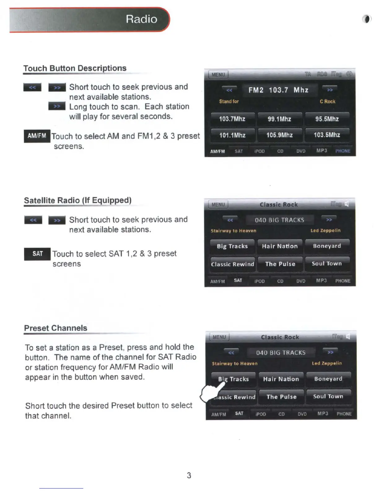 or station frequency for AM/FM Radio will