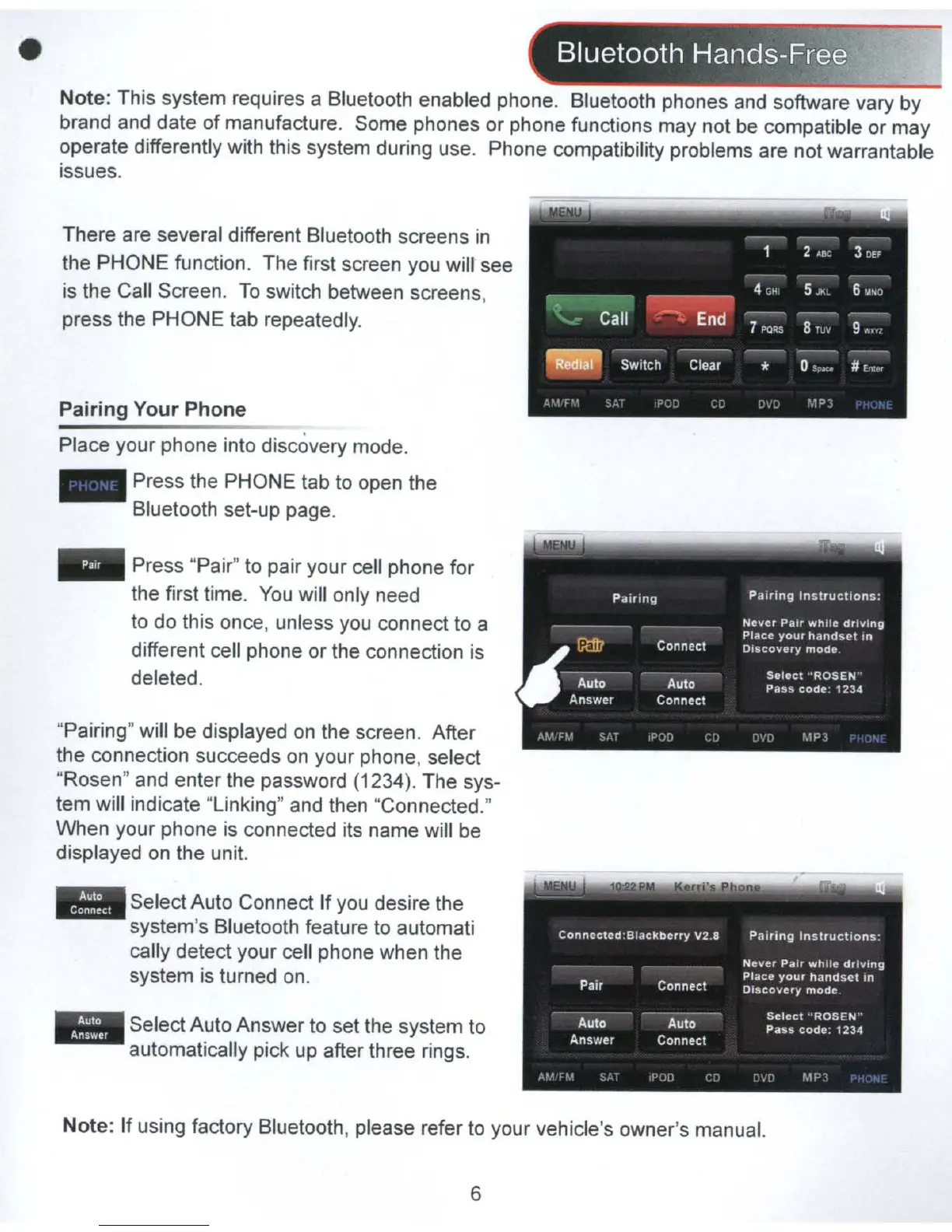 Note: This system requires a Bluetooth enabled phone. Bluetooth phones and software vary by