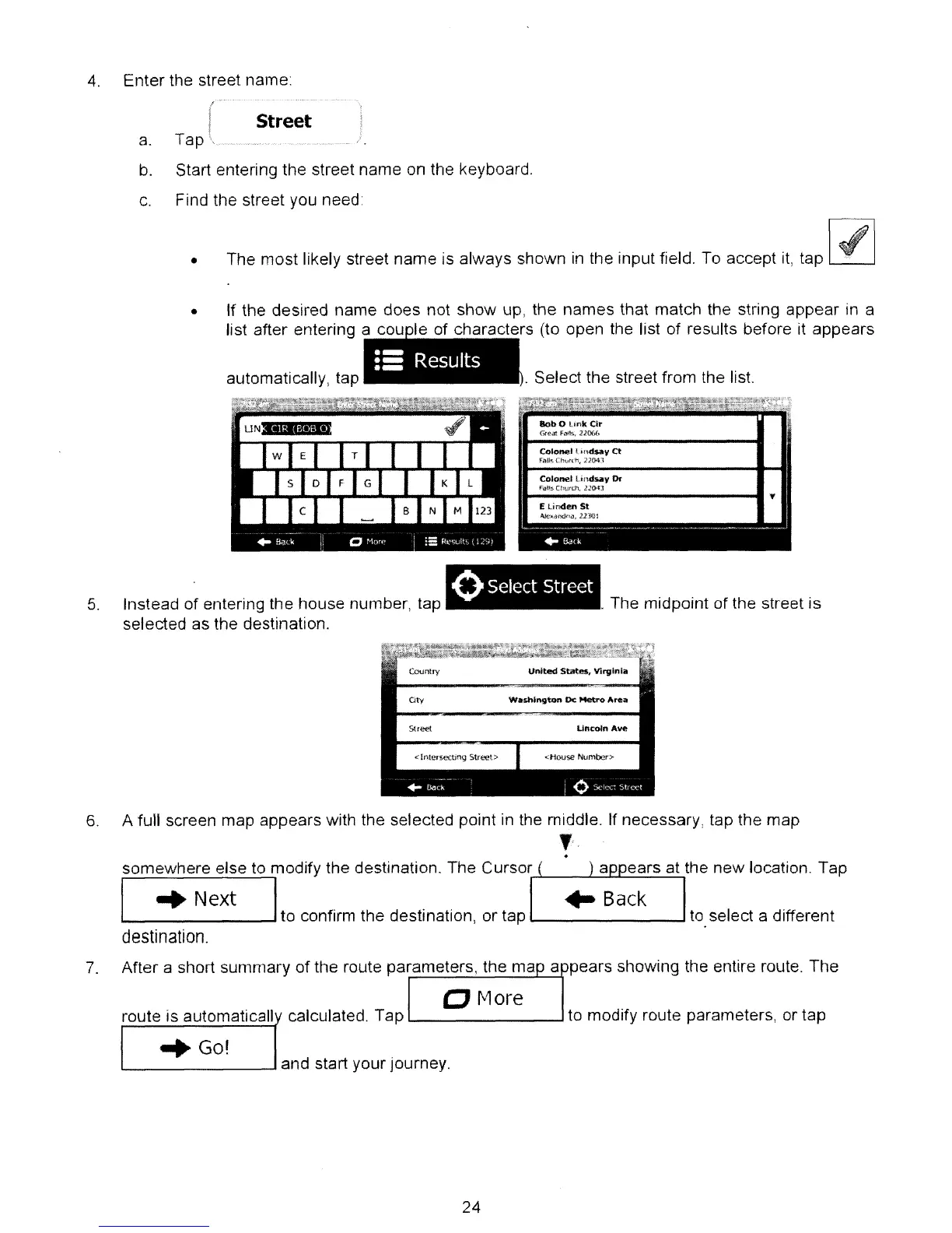 Start entering the street name on the keyboard.