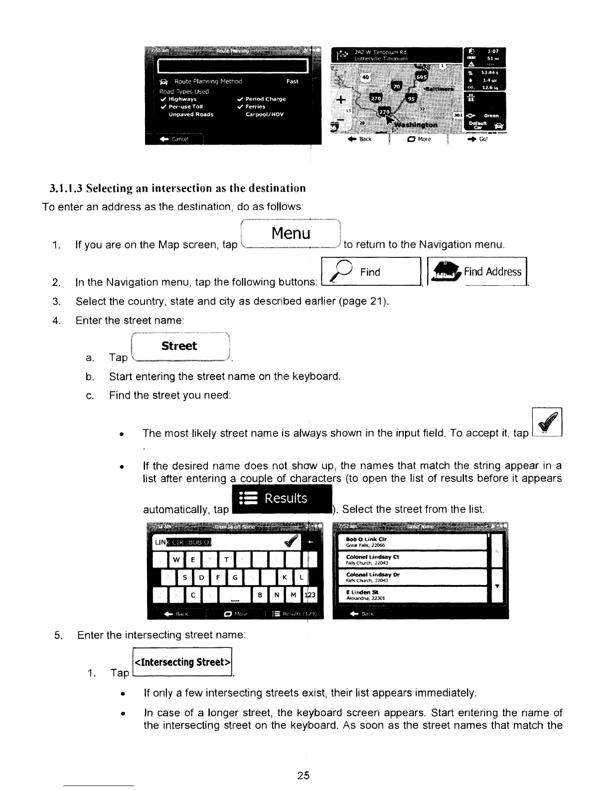 case of a longer street, the keyboard screen appears. Start entering the name of