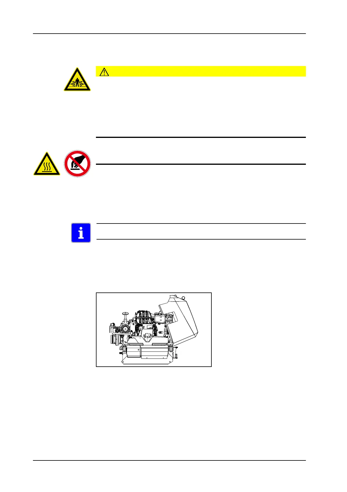 Danger of crushing and entrapment with the movable engine cover.