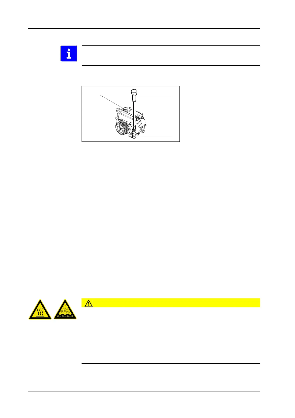 ► Remove the oil dipstick again, check the oil level of the priming pump