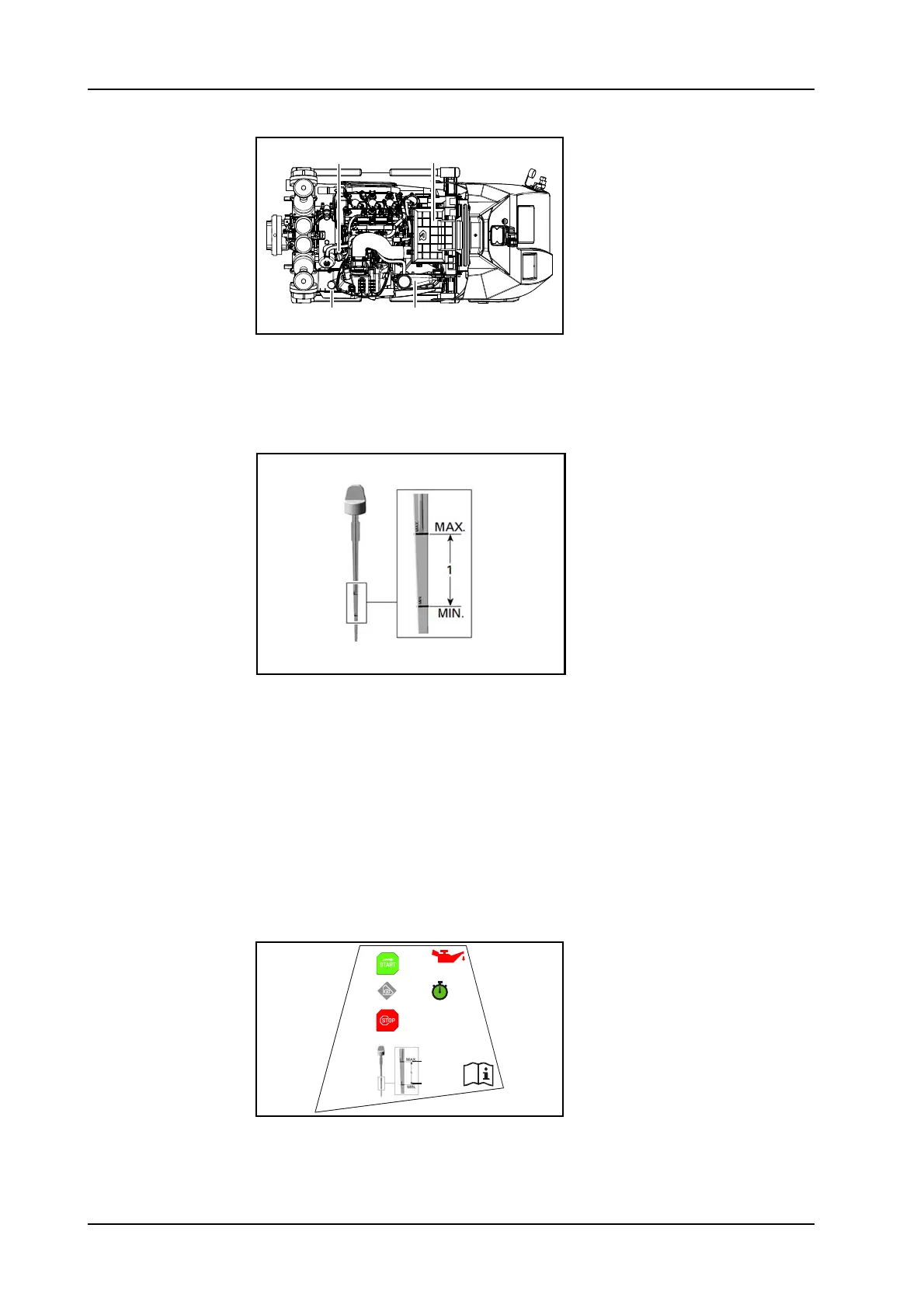 ► Check engine oil level at operating temperature of the engine.