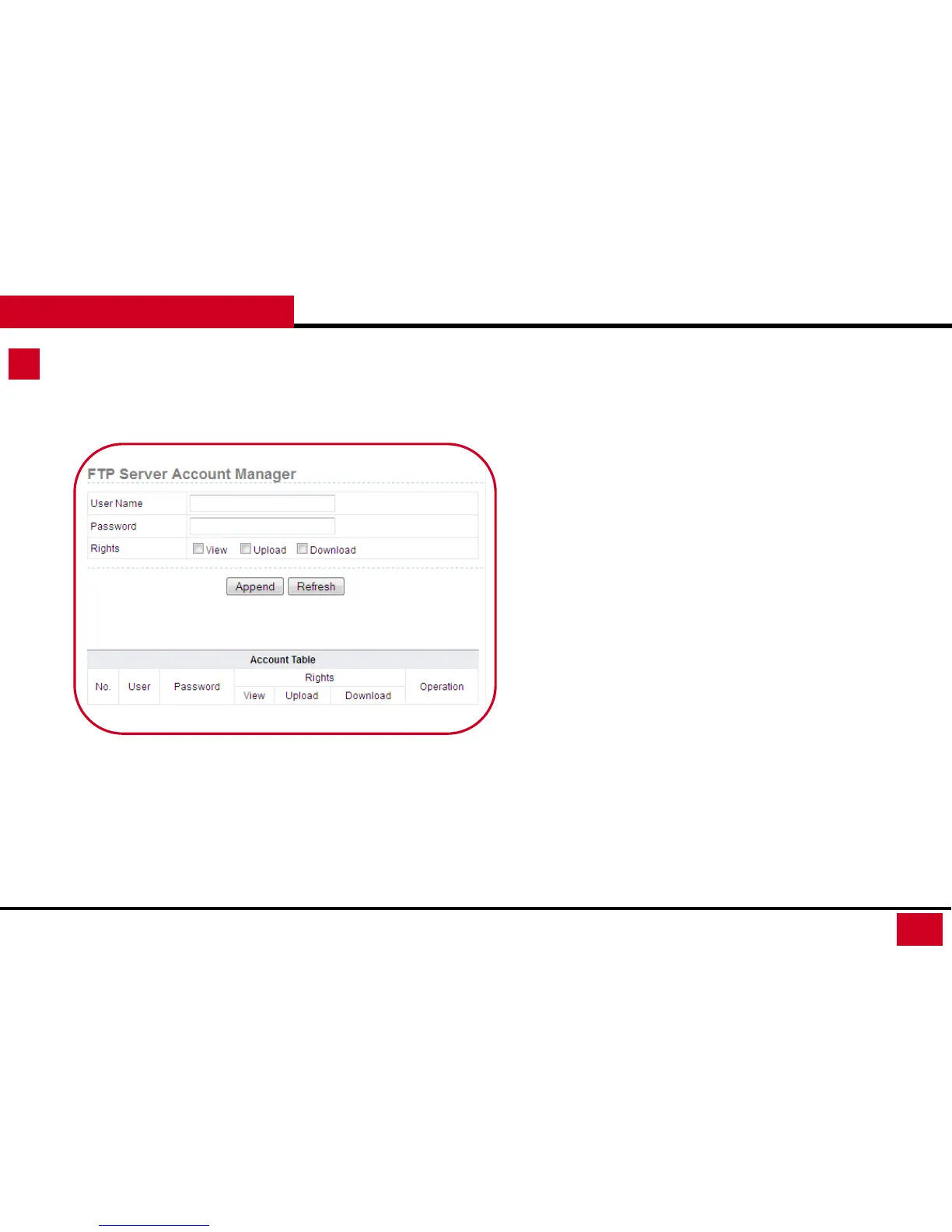 Storage Setup – FTP Server Account Manager