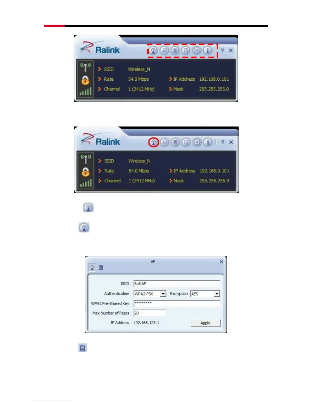Click AP button from menu bar, below window will pop out.